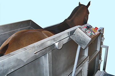 Unter dem Solarium mit integrierter Wärmedusche kann das Pferd entspannen und in Ruhe trocknen.