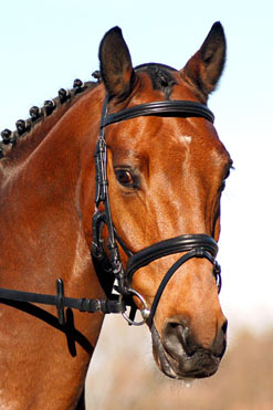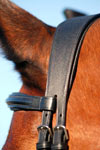 Now the underjaw strap can be tightened so the noseband is secured at the cheekbone and the cheekpiece shows a clear angle.